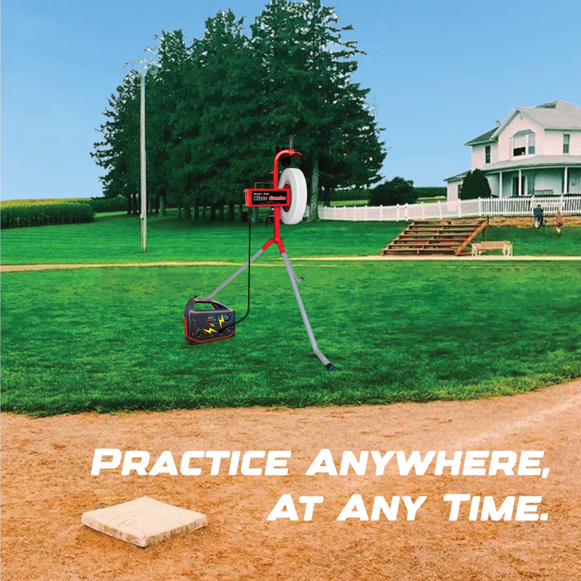 Hot Box 1200 includes dual A/C outlets to plug your pitching machine into and a simple on/off switch to power it up. Also includes other power features for different applications